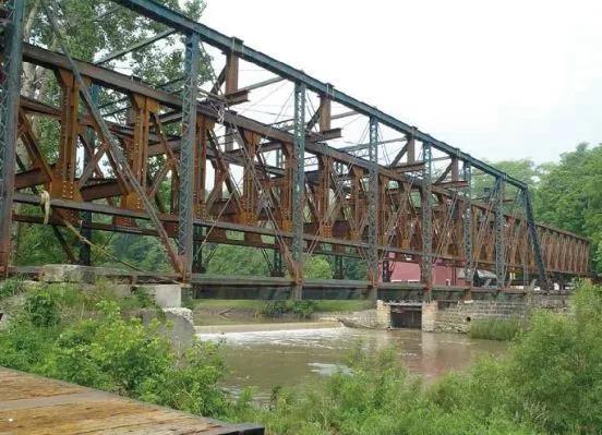 這座印第安工廠橋最初建于1913年,跨度為177ft.(約53m),單車道,采用雙腹材普拉特下承式桁架。橋梁性能日漸退化,直到它引起了懷安多特縣的工程師Michael B. Kohl的注意。鑒于這座橋梁的特殊位置,Kohl啟動了一個項目來考察如何對該橋梁結構進行保護。俄亥俄州曼斯菲爾德的一家土木/結構公司——Richland工程有限公司被選中進行修復方案的制訂,并最終給出了橋梁的修復方案。